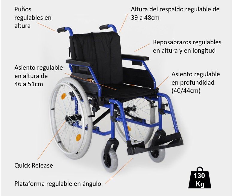 Frenos de estacionamiento y empuñaduras regulables en altura.