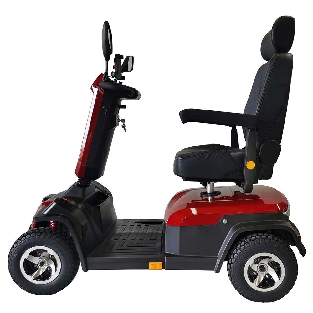 Destaca por incluir reposabrazos, luz delantera y ruedas neumáticas grandes. Gira en tan solo 104 cm.