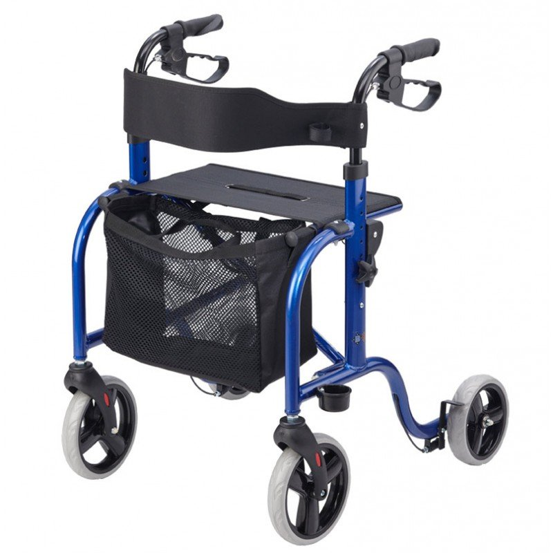 El rollator plegable de 4 ruedas eco ligth de Vermeiren está equipado con una cesta extraíble, asiento acolchado y soporte de bastones.