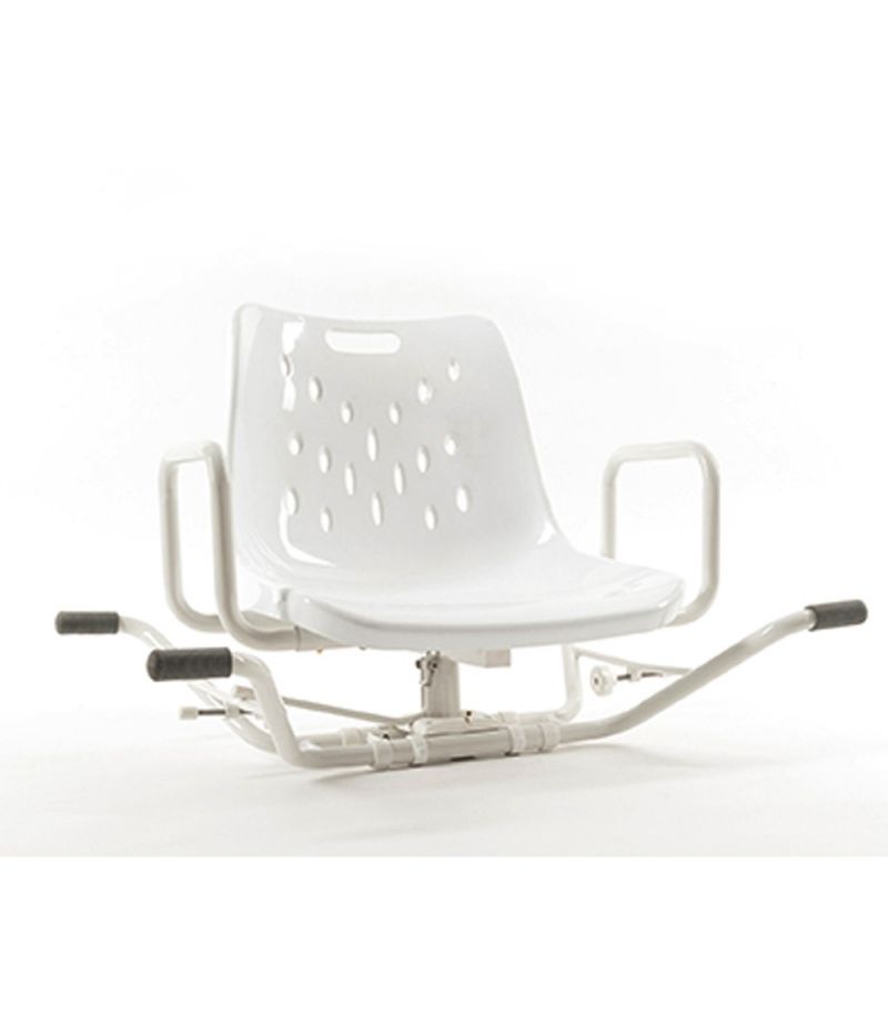 Asiento giratorio (360º) para facilitar las transferencias. Con un sistema de montaje universal y una superficie antideslizante para una mayor seguridad y estabilidad